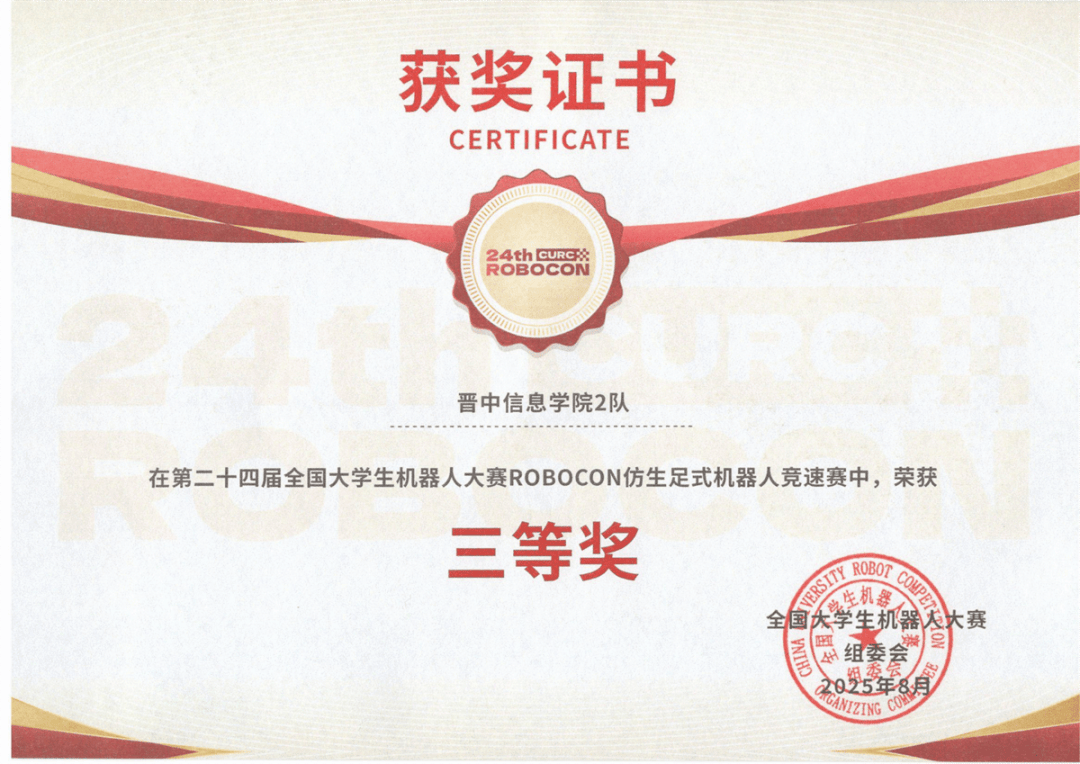 由工业和消息化部人才交换核心从办、搜获科技无限公司承办的2025年睿抗机械人开辟者大赛(RAICOM)全国总决赛中,学校学生都鑫瑞、郭雨鑫、贺琳惠、白晓婷四位同窗获得全国总决赛三等。
