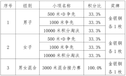 速度轮滑设须眉集体积分赛(500米+D抢先、1000米抢先、10000米积分裁减)、速度轮滑女子集体积分赛(500米+D抢先、1000米抢先、10000米积分裁减)、速度轮滑3000米男女夹杂接力赛三个小项。