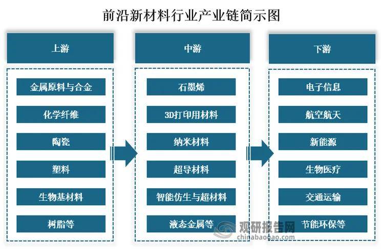 前沿新材料是新材料范畴的主要构成部门,是研究和开辟具有先辈机能或特殊功能的新材料的财产,具有计谋性、前瞻性和性,是将来财产成长的制高点。从财产链来看,前沿新材料上逛次要为金属原料、合金、化学纤维、陶瓷、塑料、生物基材料、树脂等;中逛次要包罗石墨烯、3D打印用材料、智能仿生取超材料、液态金属等;下逛为电子消息、航空航天、新能源、生物医疗、交通运输、节能环保等使用范畴。